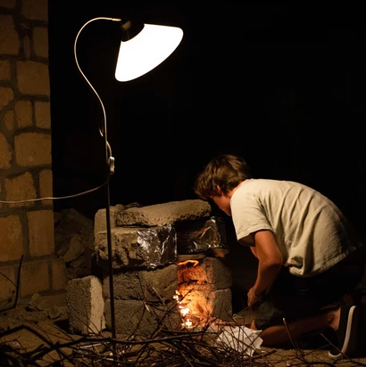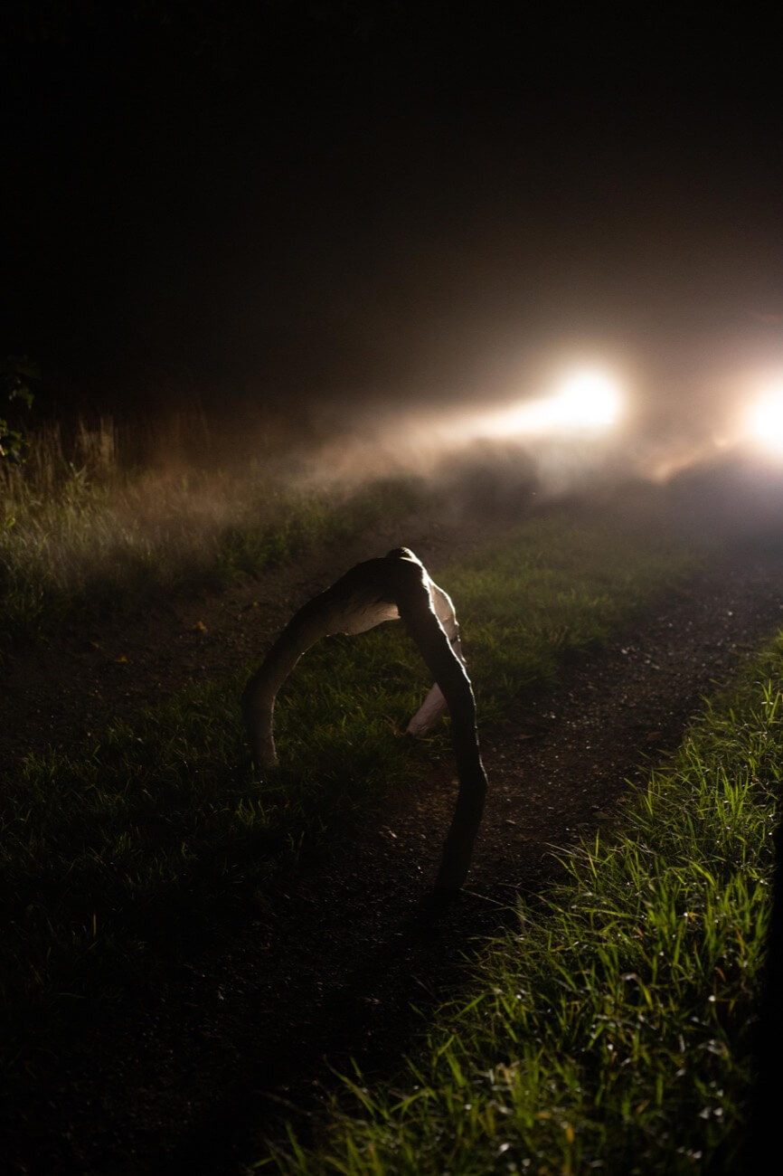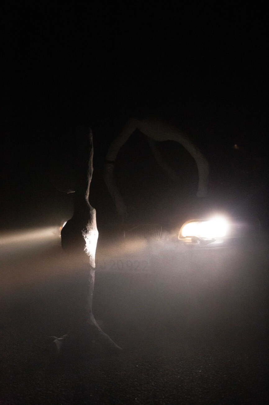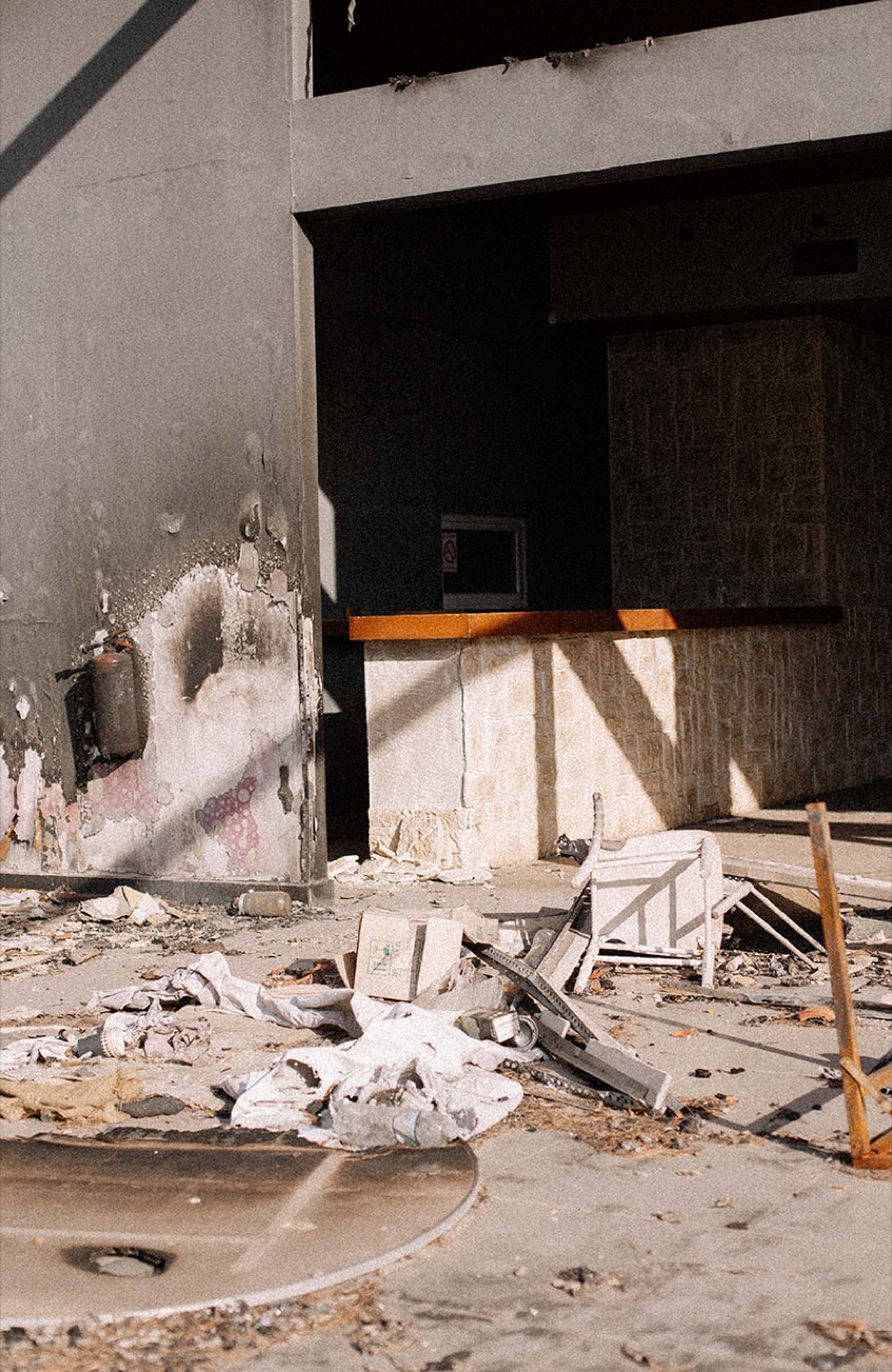 This is the closest busstation to the forest. It has been desctructed in the flames, just like so many buildings in the area. In a nightly intervention we painted it white to set symbol for a new beginnings.