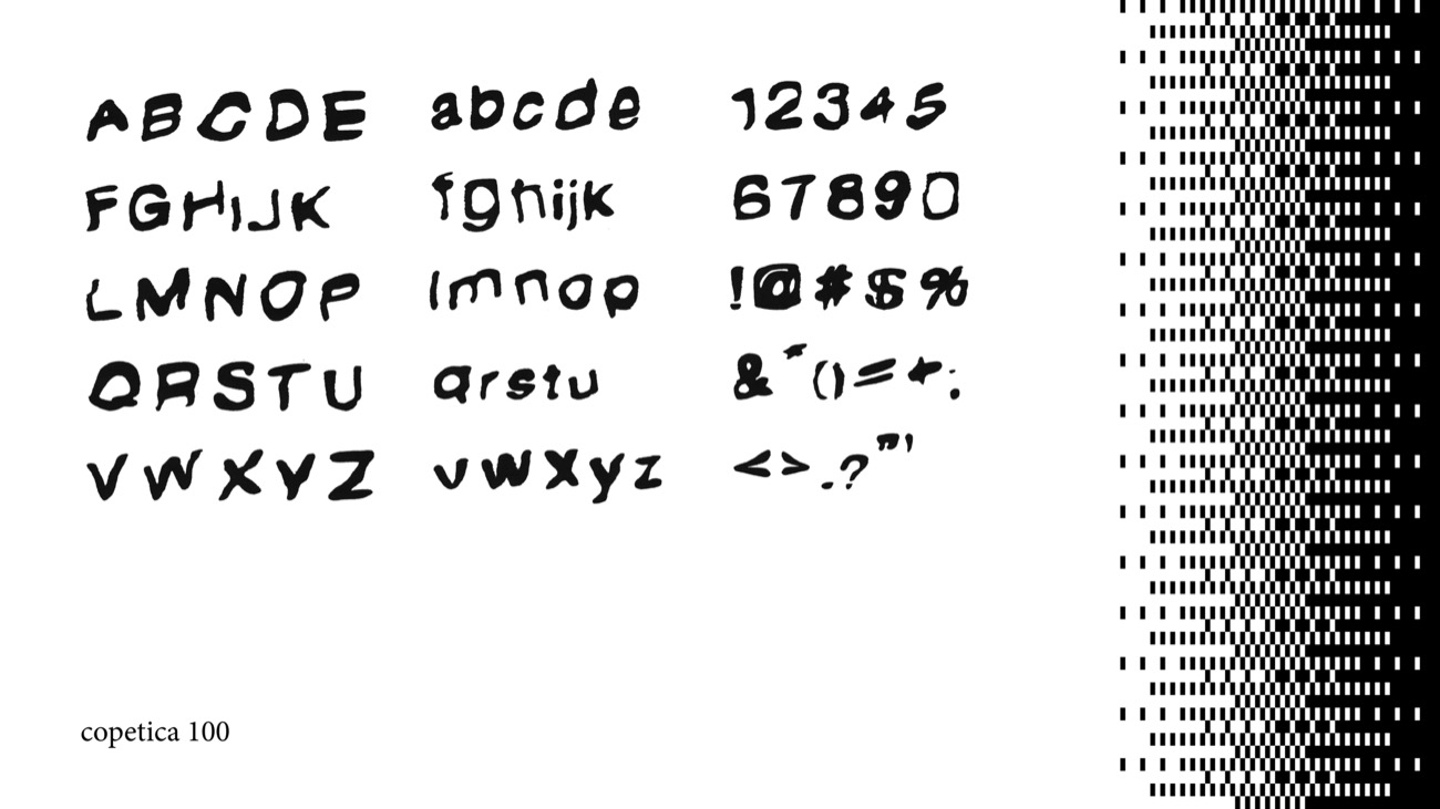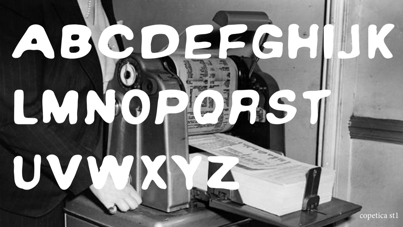 Copetica is typeface made by copying Helvetica again and again and again. It was made in collaboration with the BROTHER DCP-J172 printer with the Serial Number E72311H3F432843.