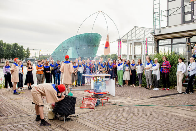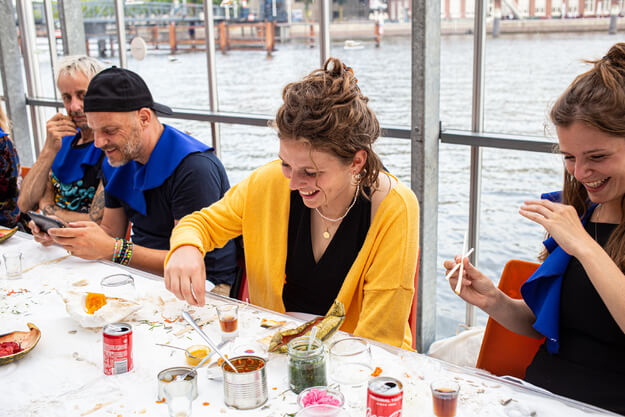 is barely inhabitable... However, a fictional cult of survivors formed a strong community around Mediamatic in Amsterdam and invited all fellow nomadic survivors for 3 neo futuristic dinners - celebrations of appreciation in the dystopian future of water scarcity. We extrapolated and explored the effects of climate change on our eating culture and our relationship to water.
