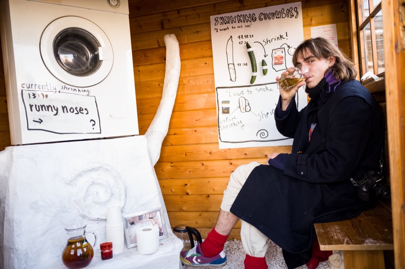 In the ‘Shrinking Temple’ we aim to explore the magical shrinking abilities of the tumblr dryer. In our quest to discover the mysteries of shrinking, we shall shrink it all, from clothes to cucumbers, and, ultimately, ourselves.